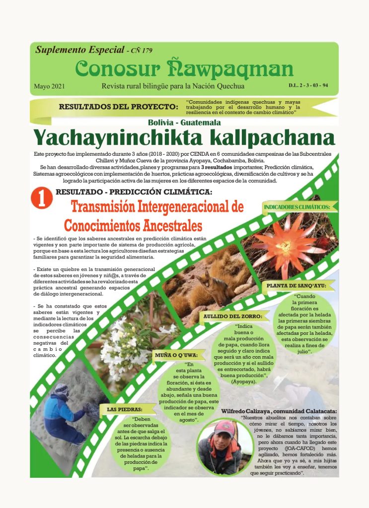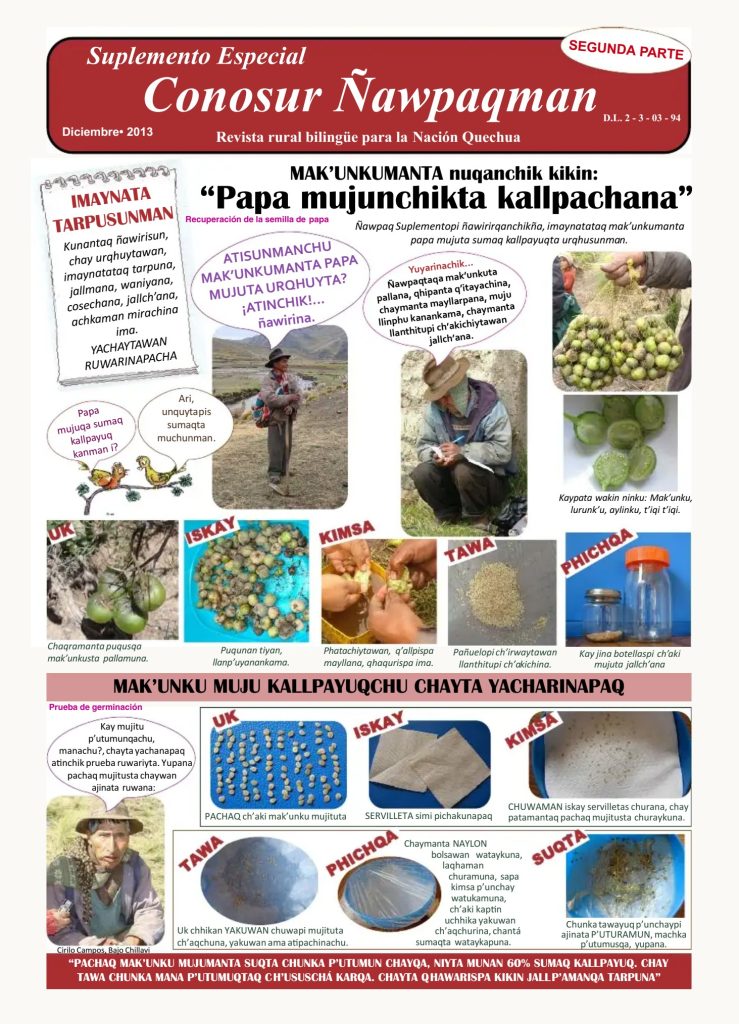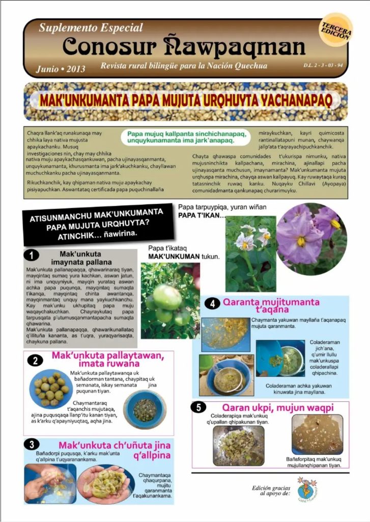 El suplemento, en idioma quechua, muestra los resultados de la experiencia de recuperación de la semilla de papa...