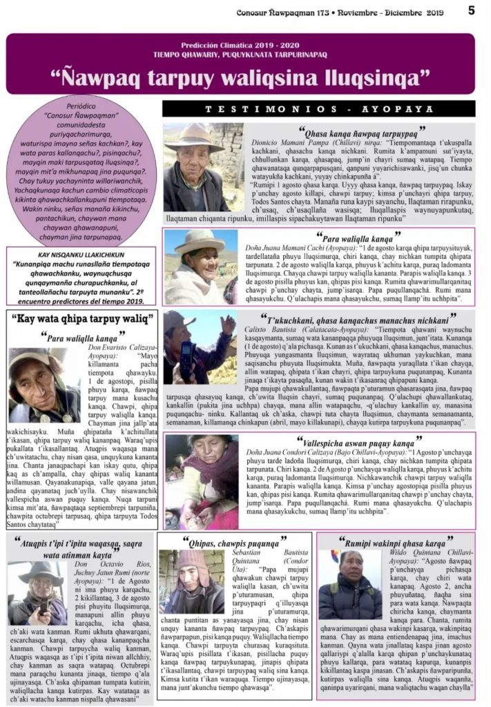 “Diciembre paraqa chawpi paraña niq kanku, kay wata qhipata para qallarin” Juana Quintana, comunidad...