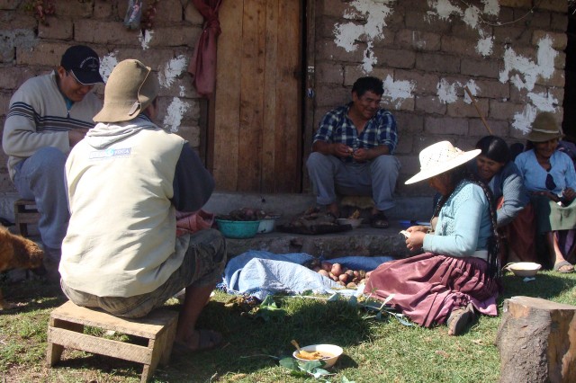 Mientras se espera que las carnes del P’ampaku se encuentren en su punto, las familias que generalmente tienen invitados, se dedican a compartir sus vivencias.